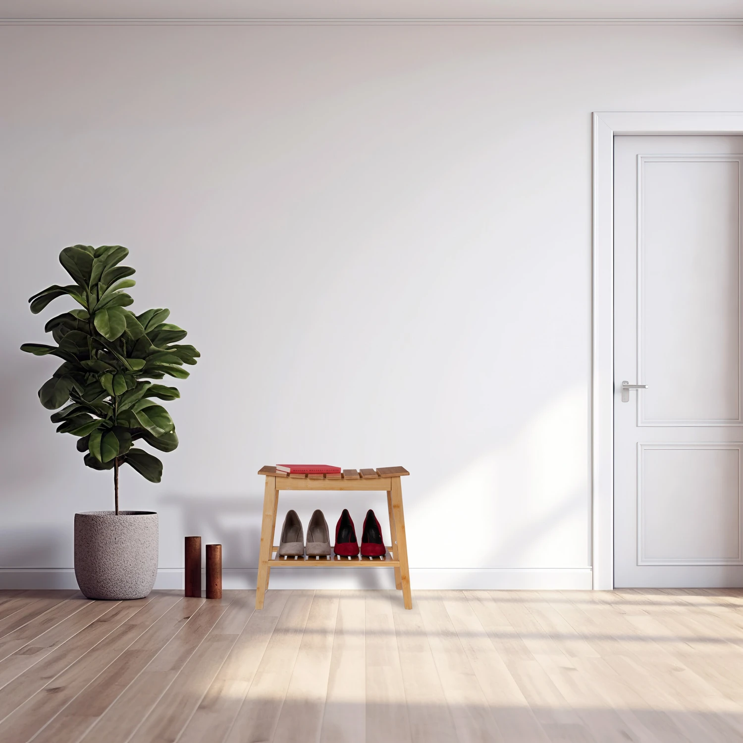 Der Badstuhl mit natürlicher Maserung bringt nicht nur Wärme in Dein Badezimmer, sondern auch Komfort und Stauraum. So kannst Du den Duschhocker als Sitzbank nutzen, während eine zusätzliche Ablagefläche Handtücher, Badaccessoires und Deine anderen Produkte hält. Durch ihr Material eignet sich die Bambusbank ideal für Räume mit hoher Luftfeuchtigkeit. Aber auch auf dem Flur oder anderen Räumen macht die Regalbank eine gute Figur – Nutze sie beispielweise als Blumenhocker oder für Schuhe.