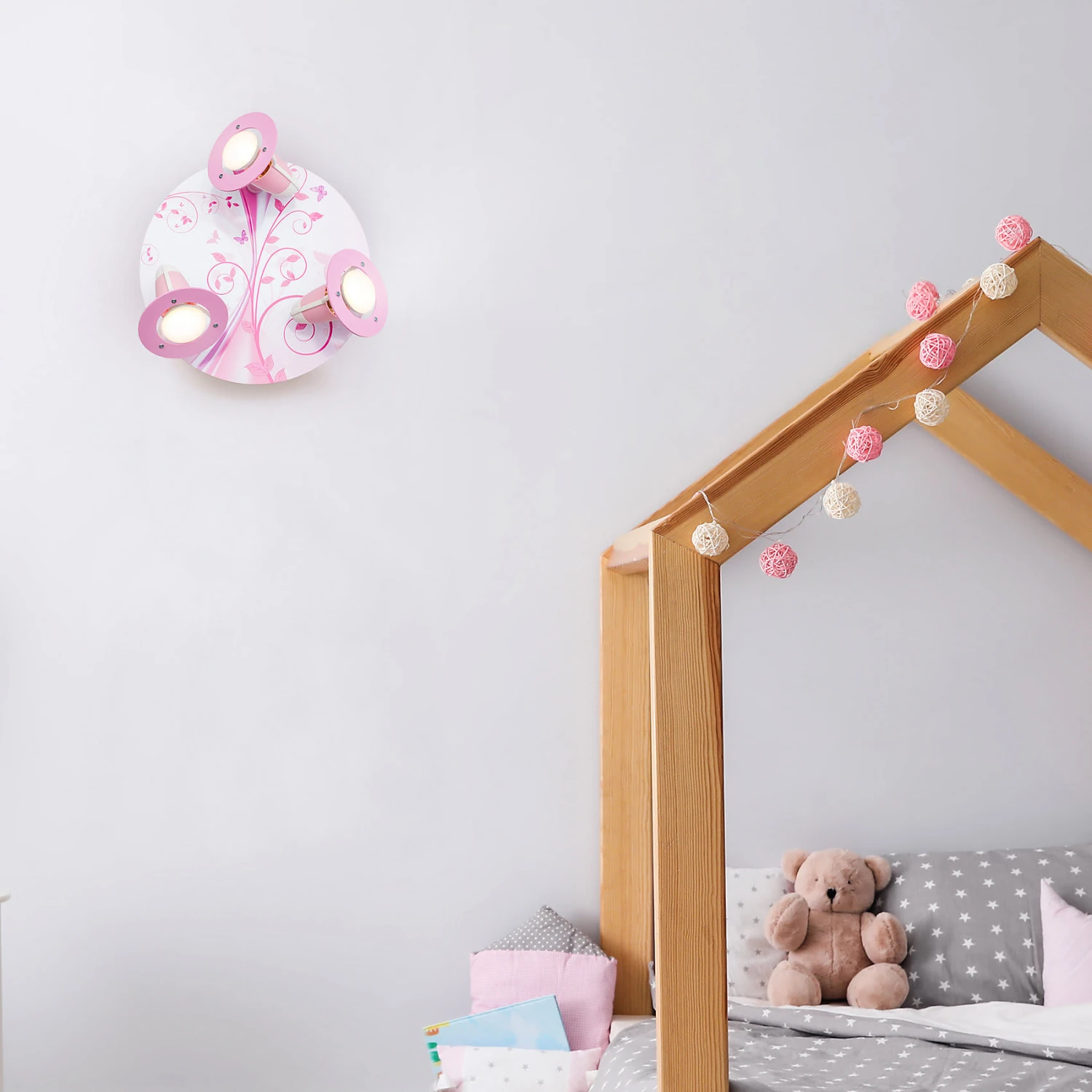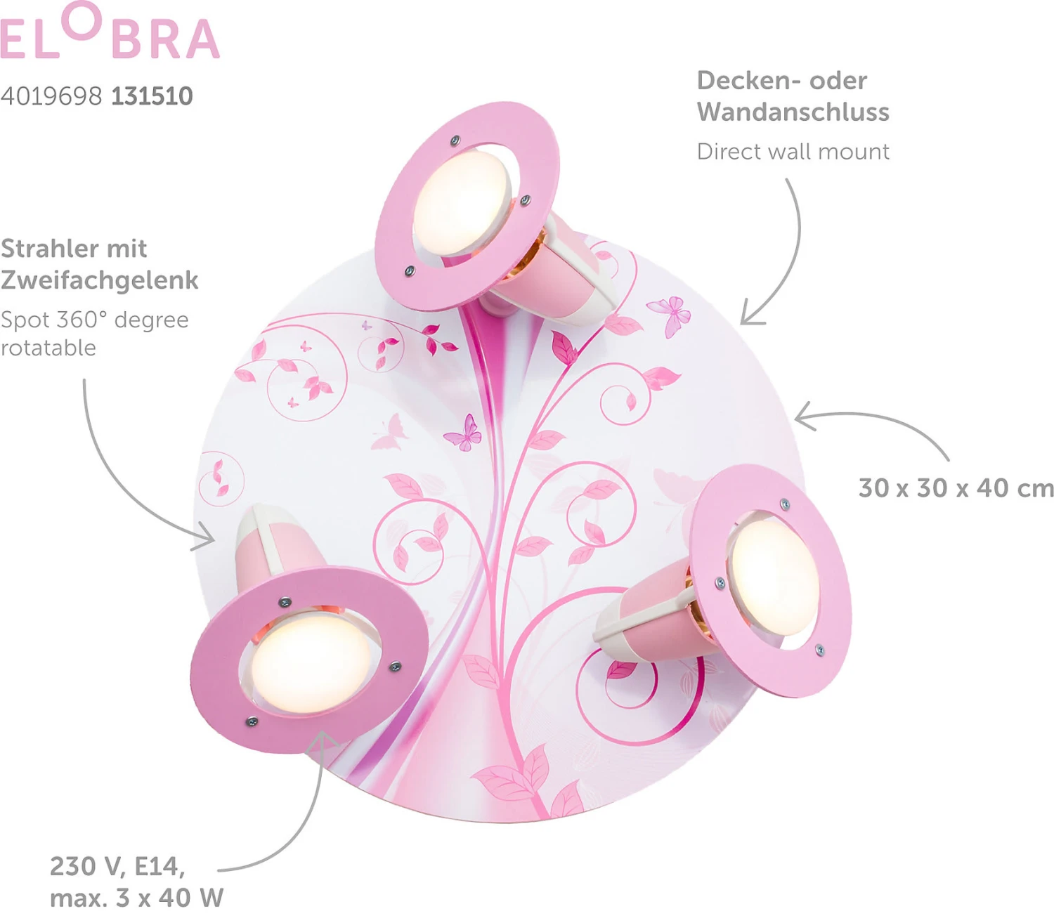 Die Elobra Deckenleuchte Rondell „Phantasie“ kann an der Wand oder der Decke angebracht werden. Die Strahler mit Zweifachgelenk lassen sich beliebig drehen. So lässt sich der Raum bestens ausleuchten.