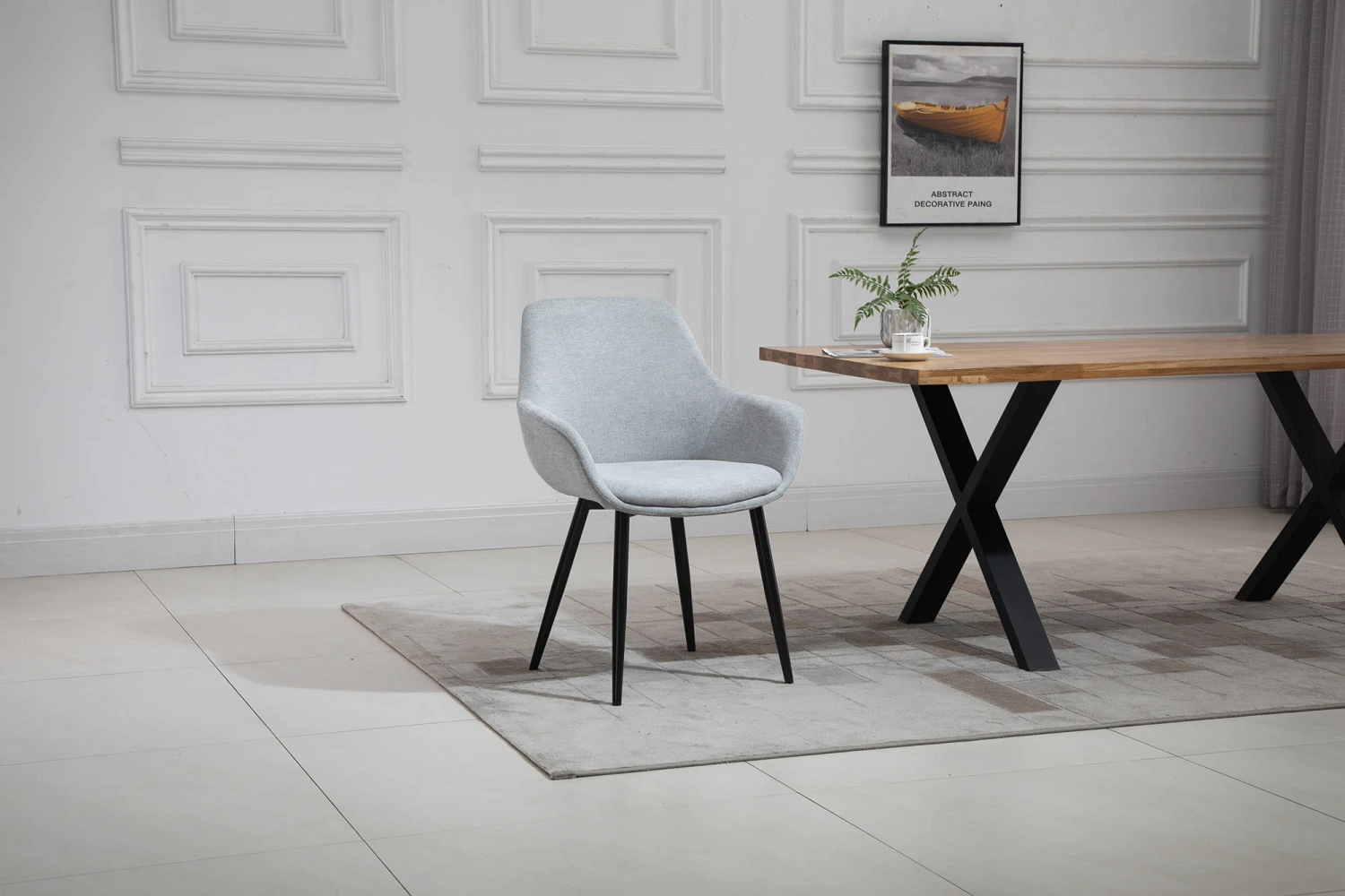 Der strapazierfähige Strukturstoff verleiht den Stühlen eine wohnliche Textur und angenehme Haptik – optisch modern und komfortabel.