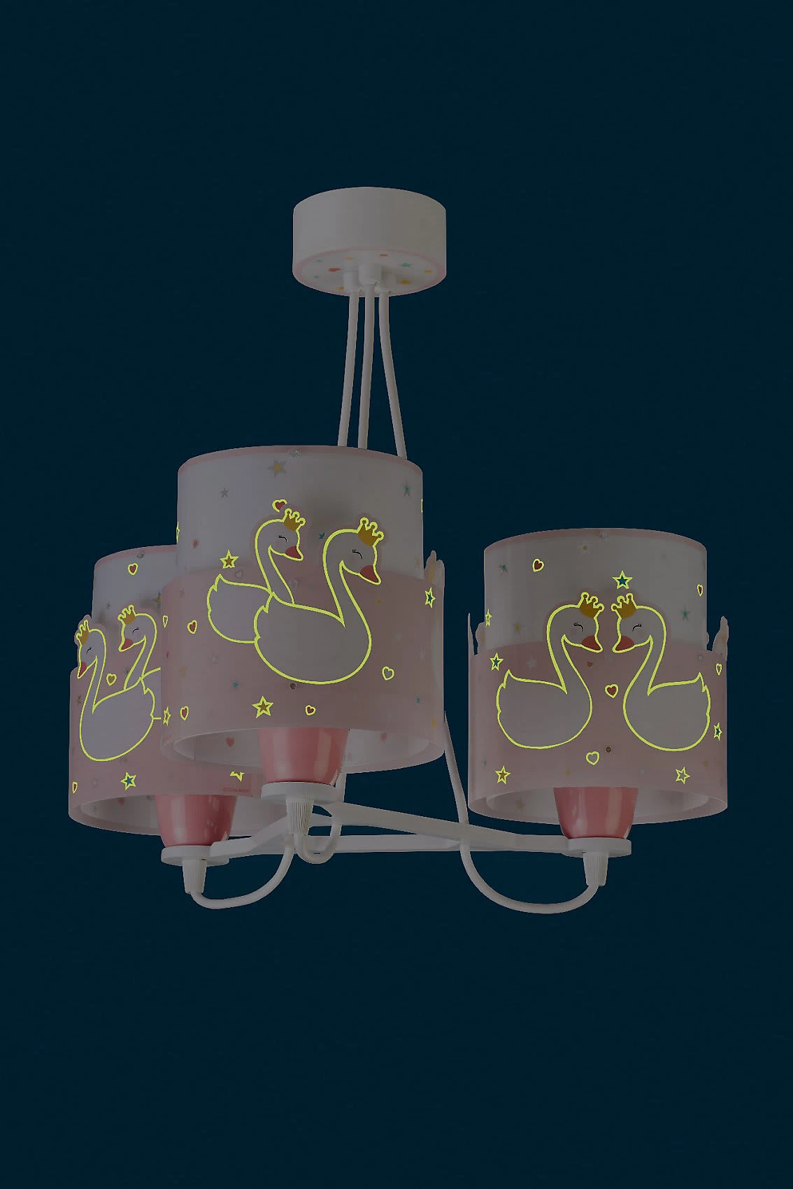 Diese süße Hängelampe erhellt jedes Kinderzimmer. Der Lampenschirm hat eine liebevolle Gestaltung mit einem niedlichen Schwanen-Motiv, welches im Dunkeln durch die fluoreszierenden Elemente ein seichtes Leuchten von sich gibt. Sorgen Sie mit der hübschen Lampe für einen Hingucker in Ihrem Zuhause, der sich in zahlreiche Raumgestaltungen problemlos einfügt.