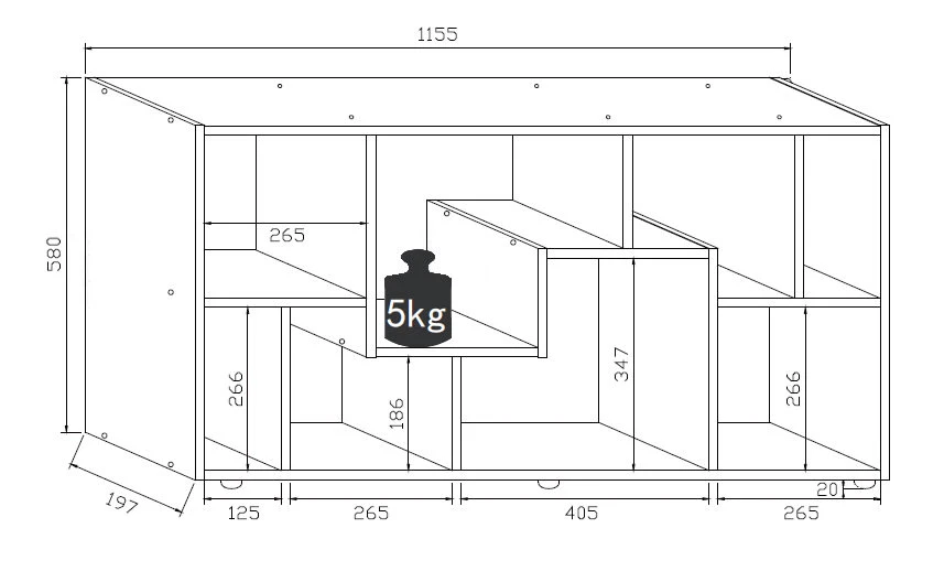 – Maße Bücherregal ca. H. 58 x B. 116 x T. 20 cm