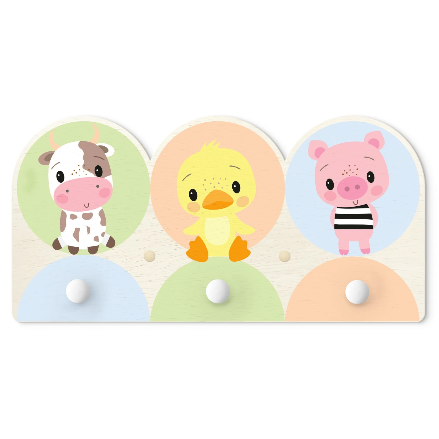 Kindergarderobe Holz – Kuh Küken Schwein In Pastell