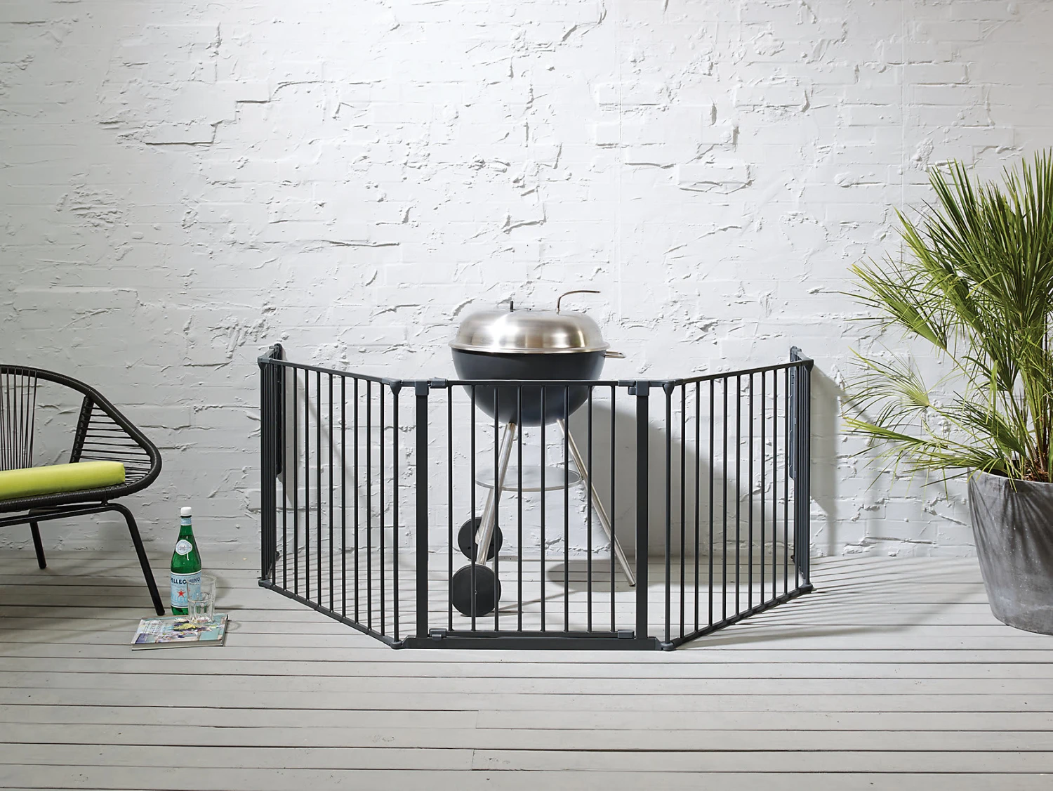 Das Konfigurationsgitter Flex XXL von Baby Dan bietet individuelle Flexibilität und Sicherheit für zu Hause. Die einzelnen Elemente können unterschiedlich angeordnet werden und bieten so viele Anwendungsmöglichkeiten. Es kann als Schutz vor dem Kamin oder Heizofen, als Raumteiler, als Schutzgitter vor breiten Türen oder vor Treppen verwendet werden oder sogar in ein geschlossenen Laufstall umwandelt werden. Es lassen sich Öffnungen von 90 bis 350 cm absperren, so dass das Gitter auch für große Bereiche optimal geeignet ist.