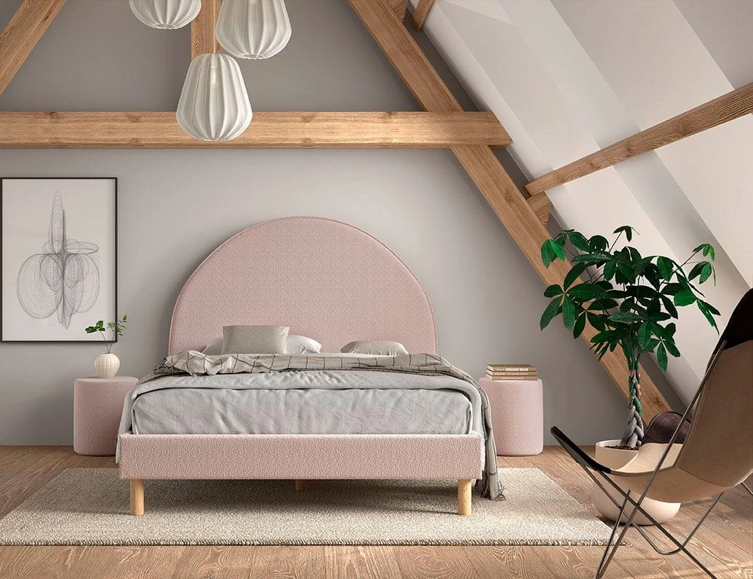 Das Polsterbett Karlotta mit der Liegefläche 140 x 200 cm, verbindet eine trendige Optik, mit angenehmen Schlafkomfort. Zum Set gehören 2 Polster Hocker/Nachttische dazu. Der skandinavisch ländliche Stil fügt sich perfekt in die Räumlichkeiten ein. Der wunderbar weiche Bouclé Stoff in der Farbe Rosa, hat eine angenehme Haptik und unterstreicht das gemütliche Flair. Das stabile Bettgestell ist aus hochwertigem Holzwerkstoff und die Bettseiten sind weich um polstert. Prägnant ist das bogenförmige Kopfteil mit einer Höhe von 132 cm. Es ist kennzeichnend für das Bett. Das gepolsterte und elegante Kopfteil (ca. 7 cm tief), ist wie der Bettrahmen, mit einem flauschigen Bouclé Polsterstoff (100% Polyester) bezogen. Das Fußteil ist ca. 6 cm stark. Die Füße sind aus naturfarbenem Massivholz. Ferner verfügt das Bett über einen Mittelsteg mit 2 Füßen. Der Lattenrost gehört zum Lieferumfang. Die 16 Schichtholzleisten (Breite 4 cm) werden einfach in die Kunststoffkappen, mittig und an den Bettseiten, eingesetzt. Die Höhe vom Boden bis zur Oberkante der Bettseite sind ca. 34 cm. Das Bett hat eine Bodenfreiheit von ca. 16 cm. Bei der 18 cm hohen Bettseite steht als Einlegetiefe für die Matratze ca. 4 cm zu Verfügung, die Matratze selbst gehört nicht mit zum Lieferumfang. Das gibt Ihnen die Möglichkeit, eine Matratze Ihrer Wahl einzusetzen. Die Dekoration und die Matratze gehören nicht zum Lieferumfang. Max. Belastung ca. 120 kg. Stellfläche Bett ca.: B: 147 x H: 132 x T: 212 cm. Der Artikel ist zerlegt zur einfachen Selbstmontage. Ebenso gehören die beiden schicken Polsterhocker Karlotta in rund dazu. Sie lassen sich universell einsetzen und können als Sitzgelegenheit genutzt werden, aber auch als Nachttisch neben dem Bett. Rundherum sind sie mit dem wunderbar weichen Bouclé Stoff (100% Polyester) in der Farbe Rosa bezogen, hat eine angenehme Haptik und unterstreicht das gemütliche Flair. Die Höhe ist ca. 41,5 cm bei einem Durchmesser von ca. 41 cm. Das stabile Grundgestell ermöglicht eine Belastung bis zu 80 kg. Die Dekoration gehört nicht zum Lieferumfang. Stellfläche Hocker ca.: B: 41 x H: 41,5 x T: 41 cm.
