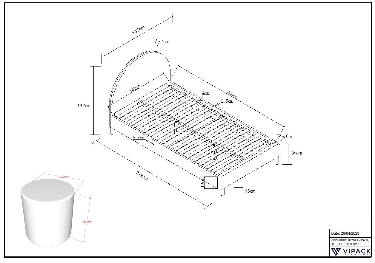 – Kopfteil: Höhe ca. 132 cm, bogenförmig
