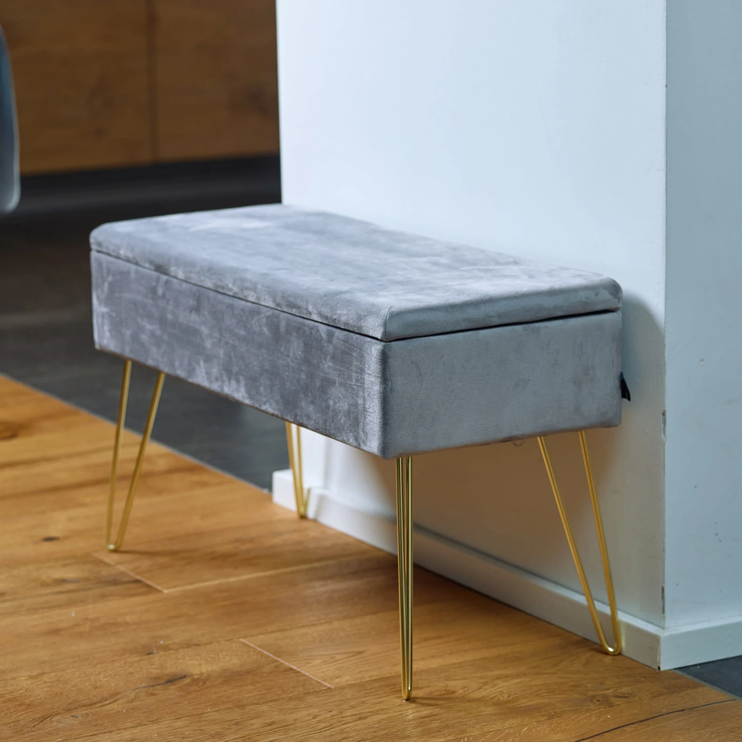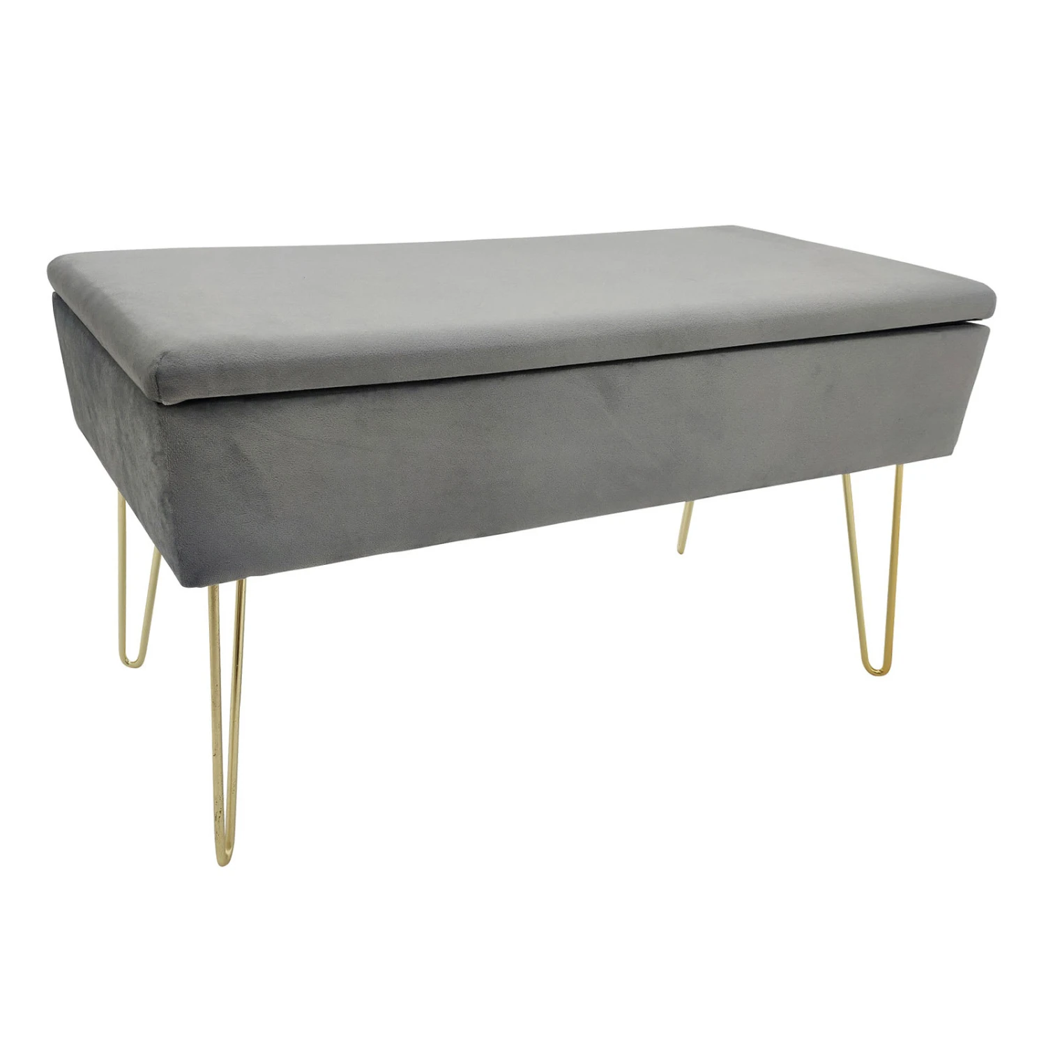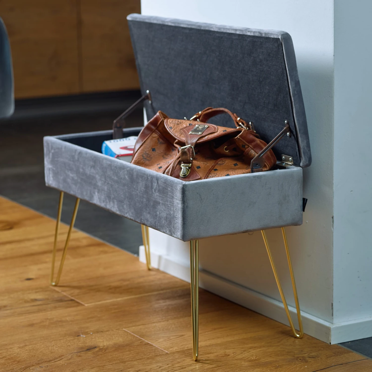 Sitzbank/Truhe Mit Samtbezug „Scarlett“ In Grau