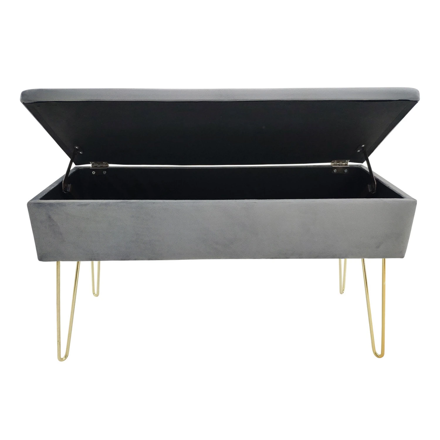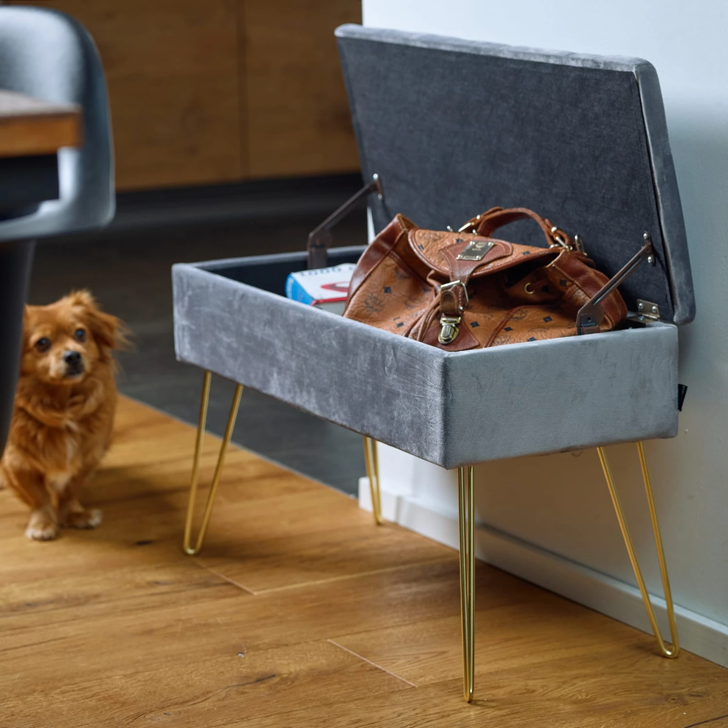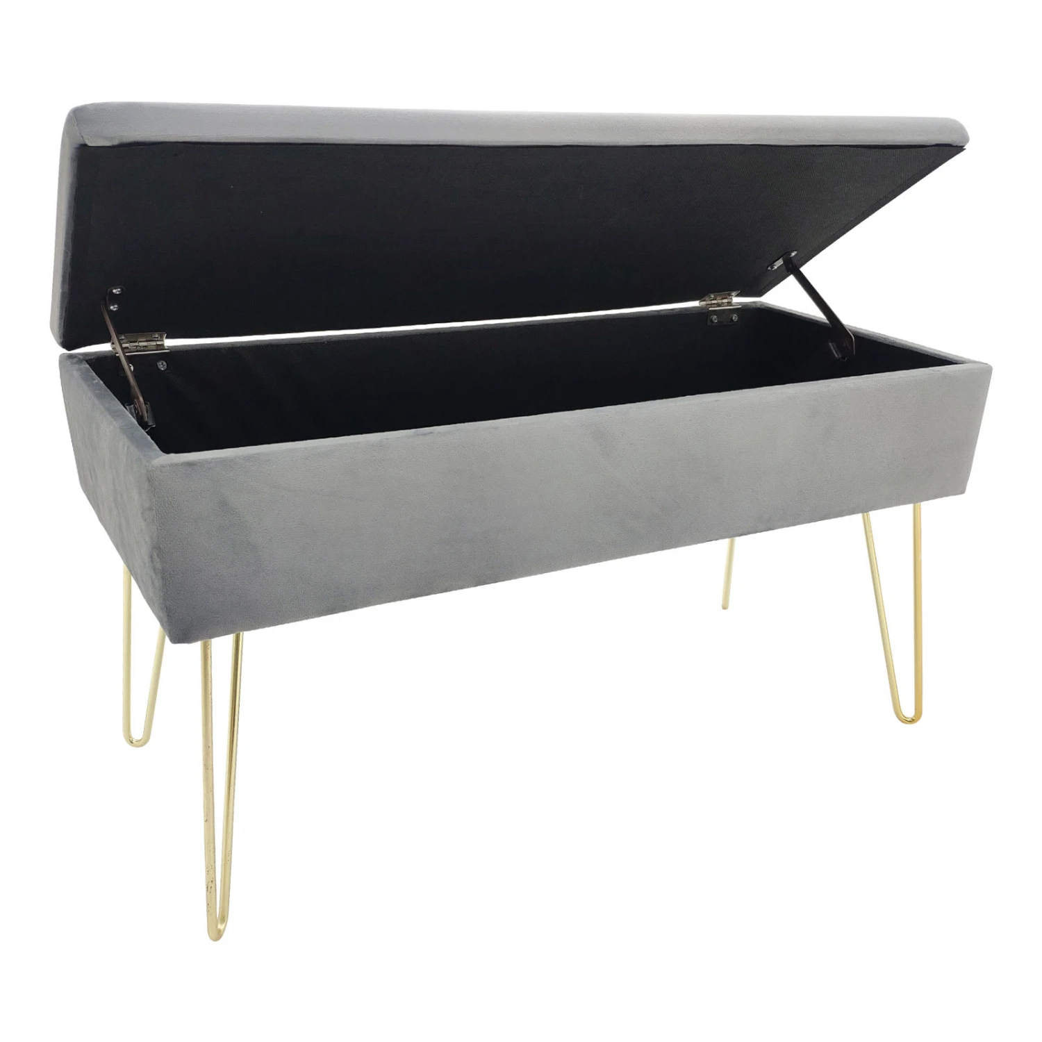 Sitzbank/Truhe Mit Samtbezug „Scarlett“ In Grau