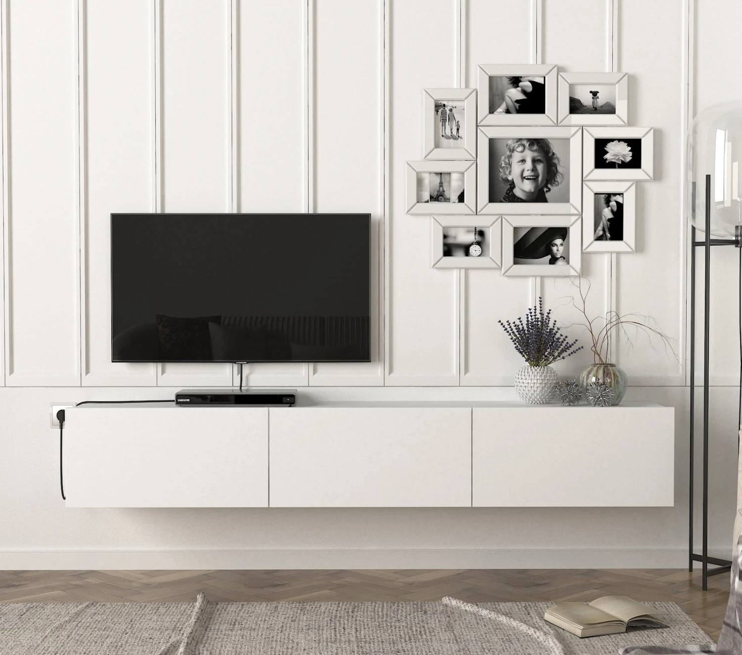 Mit unserem Damla TV Lowboard der Marke moebel17 punkten Sie nicht nur mit dem individuellen Design, sondern auch durch die obere Ablage. Hier können Sie auch größere Fernseher ohne Probleme aufstellen. Die seitlichen Ablageböden bieten Ihnen zusätzlichen Stauraum, um alltägliche Gegenstände, wie z.B. Bücher, DVD`S für den Filmeabend oder auch Kuscheldecken aufzubewahren. Diese TV Lowboard wird der neue Blickfang in Ihrem Wohnzimmer
