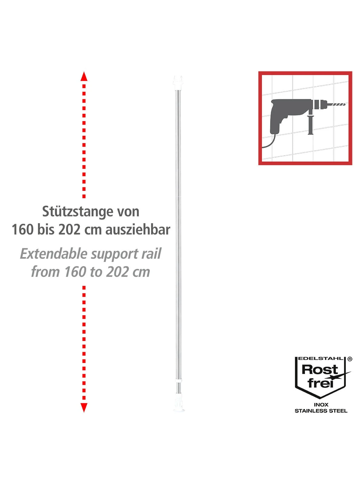Für mehr Stabilität und höhere Belastbarkeit (bis zu 110 kg) sorgt eine Stützstange, die von 160 bis 202 cm ausziehbar ist.