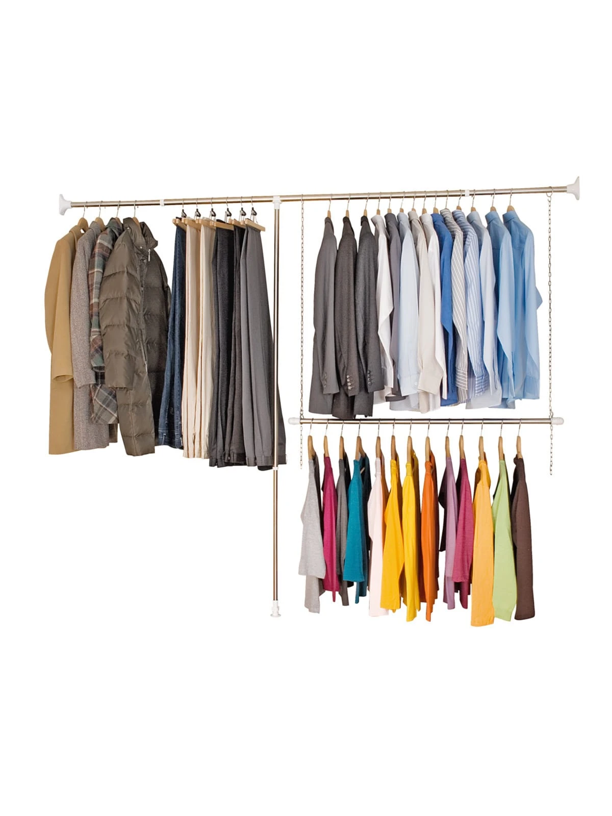 Mit dem Teleskop-Garderoben-Set aus hochwertigem, rostfreiem Edelstahl wird der Traum eines begehbaren Kleiderschrankes wahr, denn nahezu jeder Raum kann jederzeit einfach als Kleiderschrank eingerichtet werden.