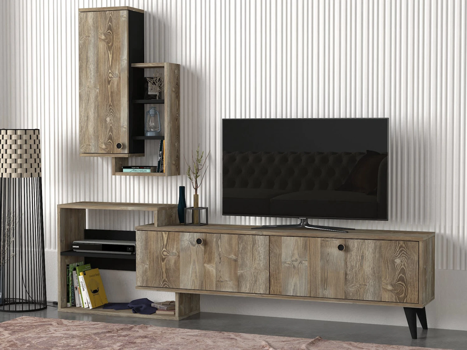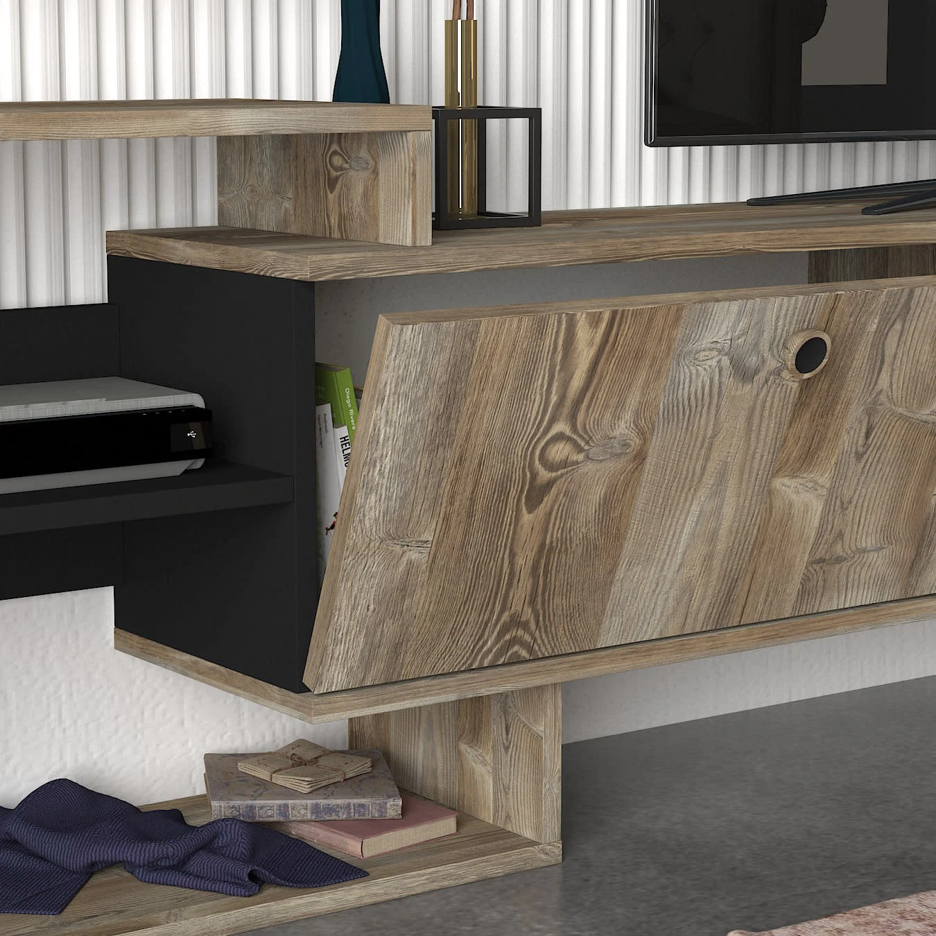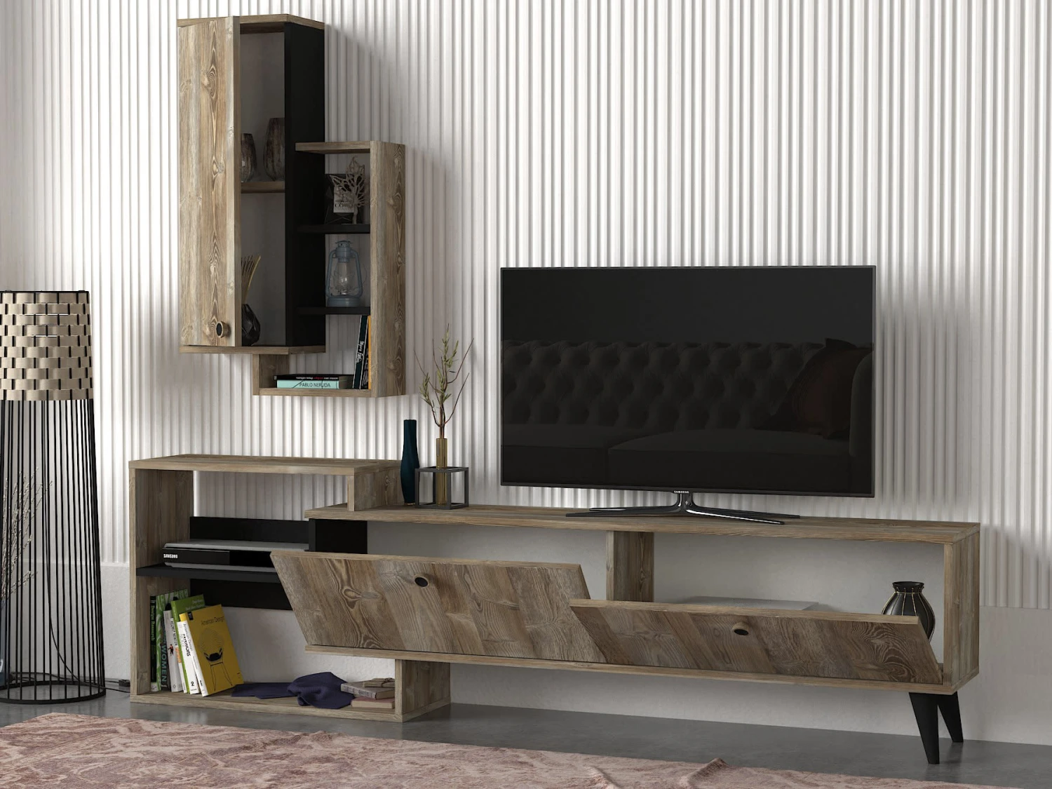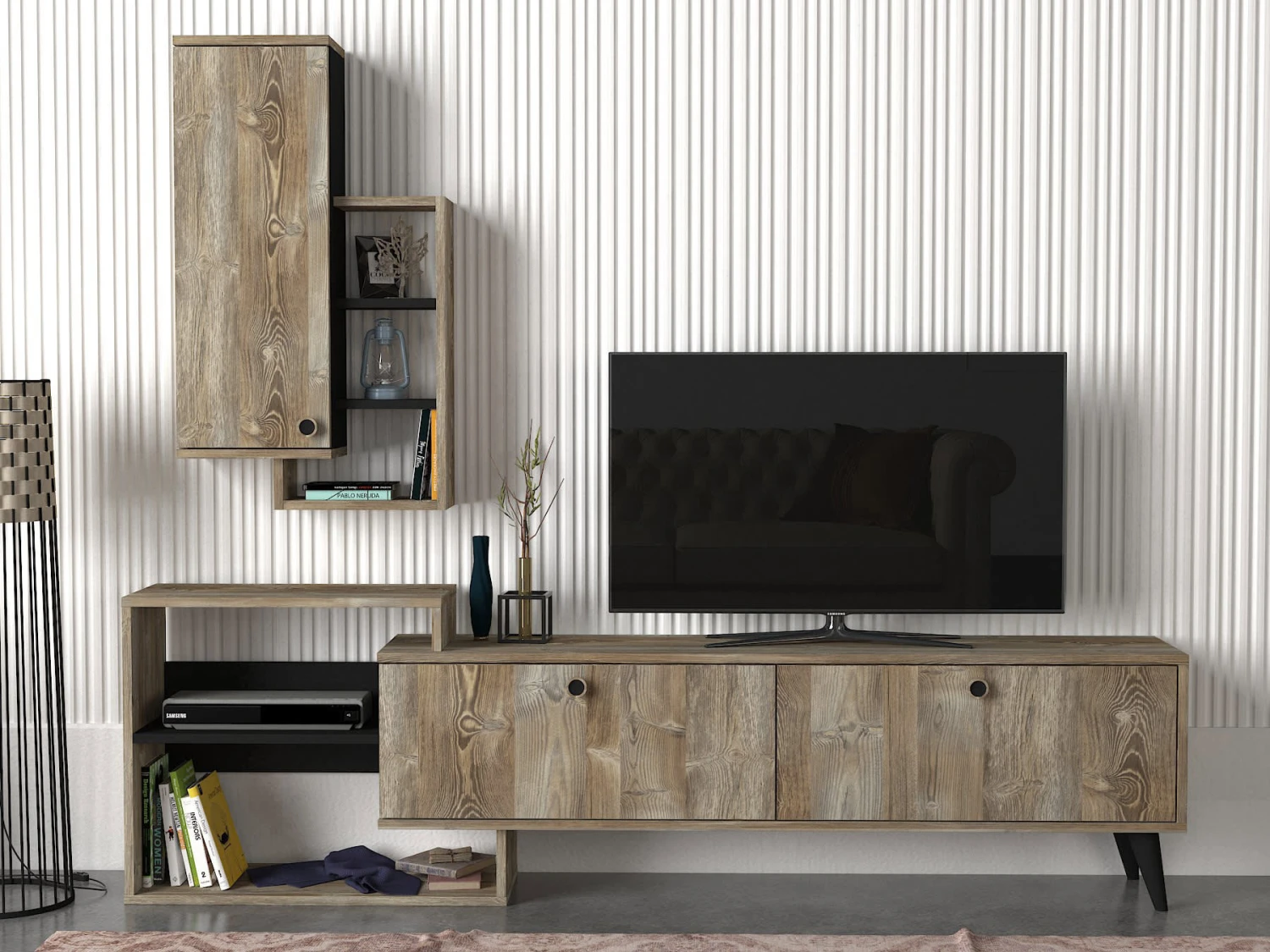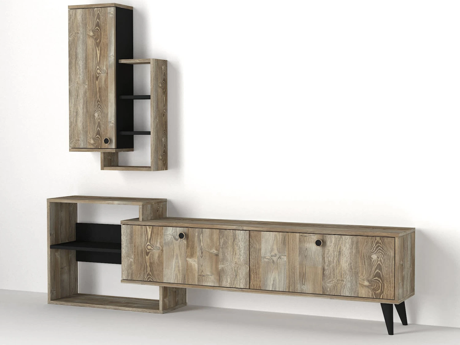 Die Wohnwand besteht aus hochwertiger Melamin beschichteter Platte 18mm Güteklasse E1.