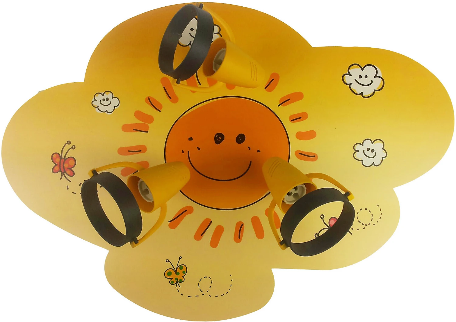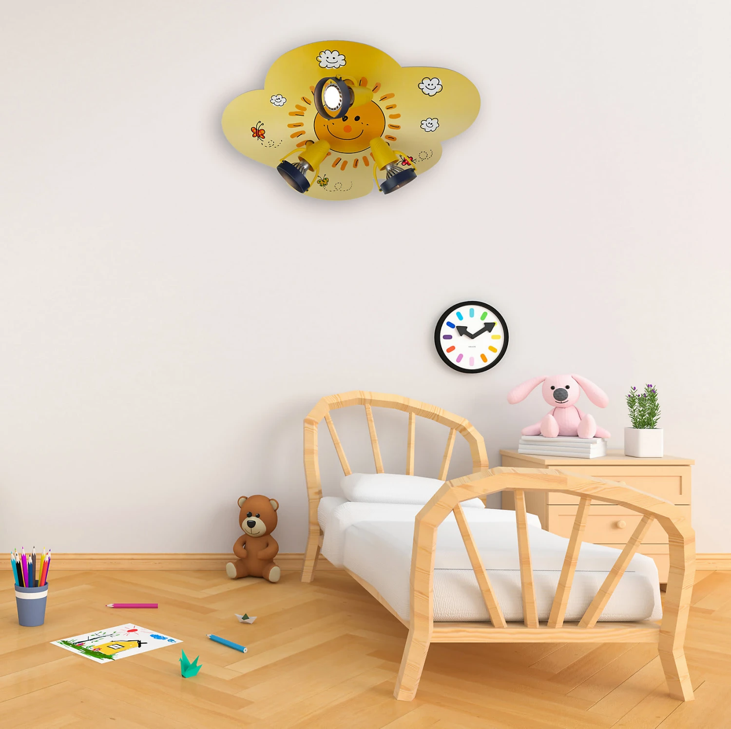 Diese schöne Strahlerleuchte mit der fröhlichen Sonne verleiht jedem Kinderzimmer eine angenehme Atmosphäre. Die drei Spots sind verstellbar und für LED- und Halogenleuchtmittel geeignet.